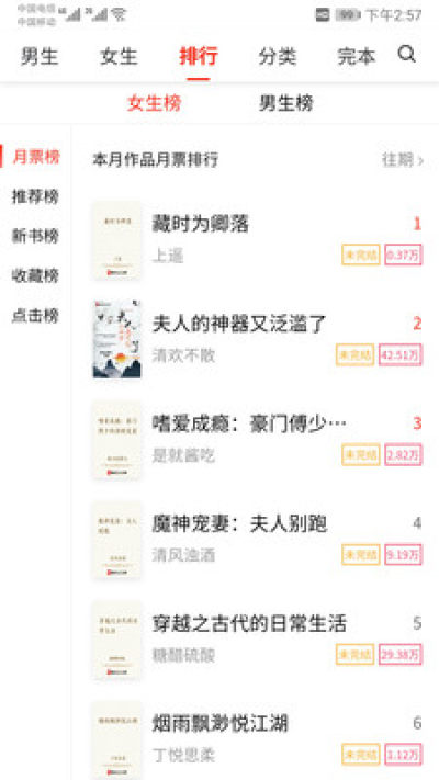 3.海量书库:各类推荐,分类书库,以及排行榜方便您找到各种独家网络作品和各类热门的畅销书或者您喜欢的。