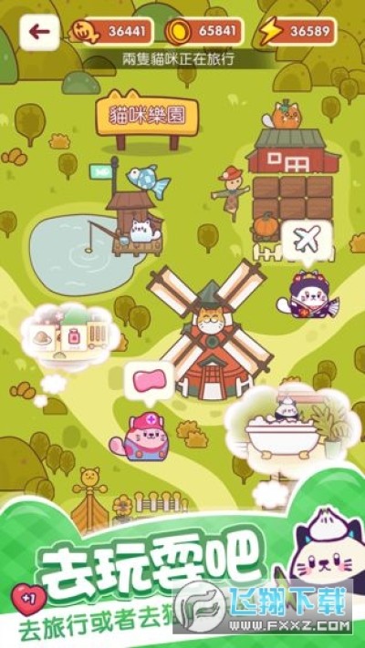 3、续扩大您的猫乐园,这里有很多猫和设施!快点冒险!数字化消除压力并燃烧您的大脑!