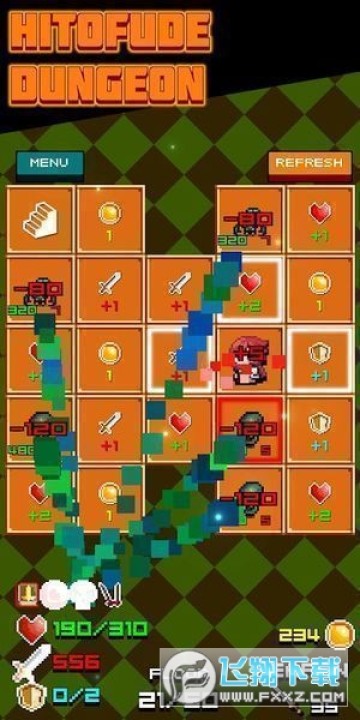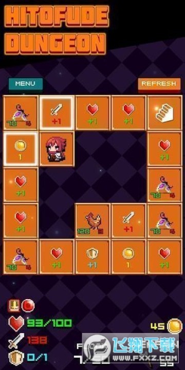 玩家需要在不走回头路的情况下,尽可能的吃到更多的加成道具和挑战合适的敌人并进入下一层地牢继续冒险。