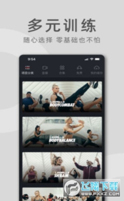 4、原版课程 一站体验:已上线BODYPUMP, BODYCOMBAT, BODYBALANCE, SH'BAM, CORE, GRIT, LES MILLS BARRE, RPM, BODYSTEP九大项目的多期课程,所有项目视频皆为国际原版课程视频,配有中文翻译,且提供配音版本。