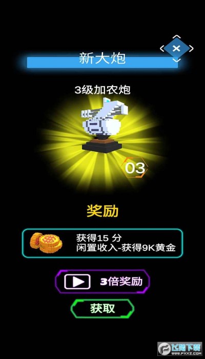 打爆砖块即可获得金币和星星,可用来换取更强力的炮塔!