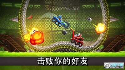 《撞头赛车!》是竞技场赛车游戏,从怪兽卡车到外星飞碟,用各种不同车辆重击朋友的头盔,打败对方!打碎头盔制造大量车祸,用上百种车辆在不同等级里玩出无穷无尽的刺激动作游戏!你可以在四种模式下玩《撞头赛车!》:用同一台设备或无线网络,跟朋友在本地多人模式中进行双人竞赛!探索各种有恐龙、外星人和机器人的精彩任务!在山丘之王中消灭没用的东西,成为至高无上的王者!分享你最棒的超级明星运动场回放,就有机会成为游戏精选!你会成为下一位撞头赛车超级巨星吗?!自定义比赛或是选择随机模式惊喜配对!你可以用卡丁车战胜怪兽卡车吗?逃避不是办法,突然死亡会带来锯刀、火雨和洪水。唯一的生存之道就是战斗到底!在奖品机使用收集的虚拟点数,就可以一边玩游戏,一边解锁各式各样的车辆和赛场!