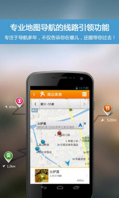 2、最准:精确地理位置,查询结果后提供驾车导航、公交路线、步行引导的功能;