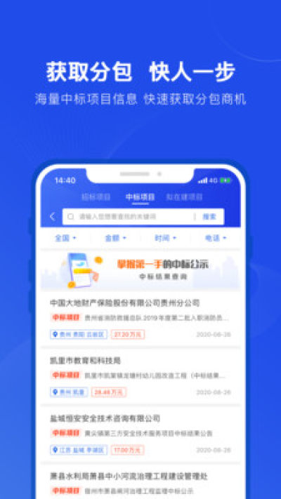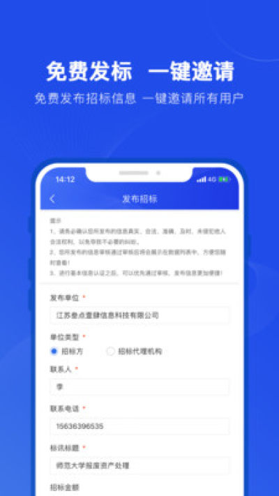 实时招标网app是一款手机电子投标招标平台,这款软件覆盖全国,在全国范围内都能查找到你需要的招标信息,在实时招标网app上还能免费发布招标信息,直接查看项目信息,非常方便,需要的用户快来试试吧!