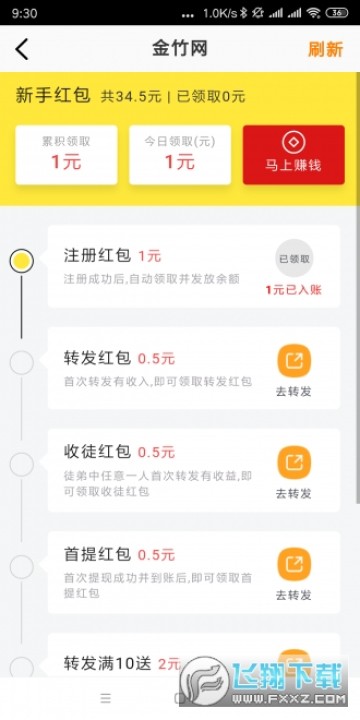 金竹网APP是金蟾网科技旗下在牛年全新上线的转发文章赚钱平台,软件于2021年2月24日全网首发!新人下载安装金竹网赠送1元红包,平台上涵盖了新闻、健康、养生、美食、科技等文章资讯,转发分享至您的微信群或朋友圈,好友点击阅读就能获得现金收益,首日单价1.5元/阅读,次日单价2.5元/阅读(持续一周),上分速度飞快,满10元就能申请提现!
