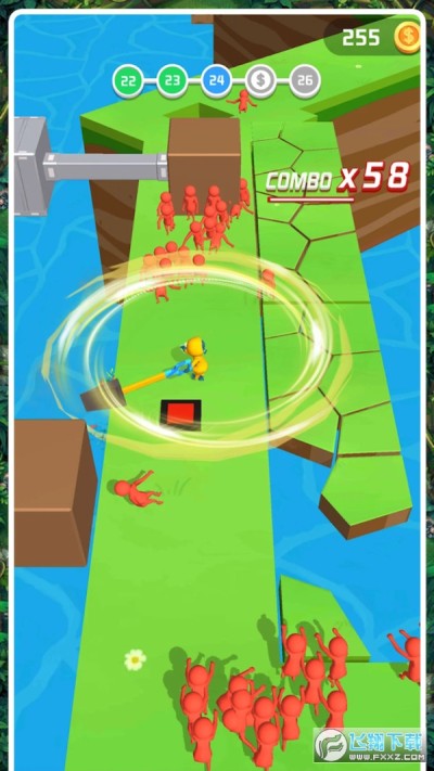 3、当你完成关卡就能获得一定得游戏奖励,会有跟中不同颜色小人要推倒。