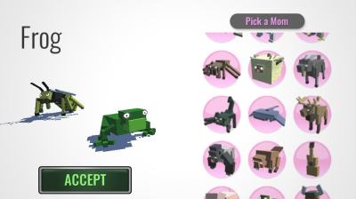 从一个巨大的列表中选择2只动物,游戏将使用算法将它们一起繁殖!每种杂交都有自己独特的能力。你可以制作数以百万计的生物!