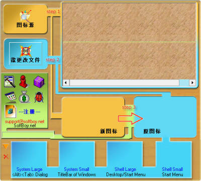 1、取代各种可执行文件的图标和允许以不同尺寸的任何图标的地方、替代的图标可以从图标文件或其他可执行文件选择
