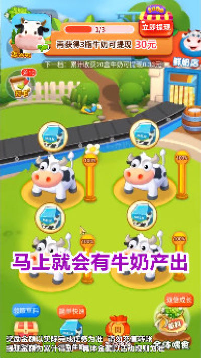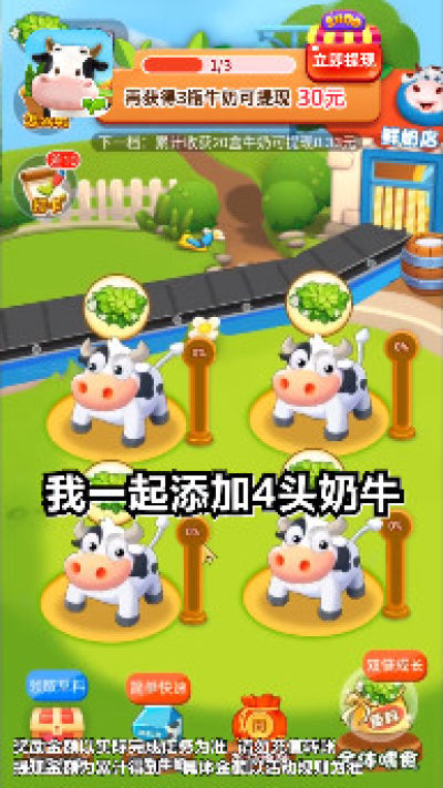 4、自己在无聊的时候就可以进入其中去培养奶牛,产奶以后售卖才可以盈利;