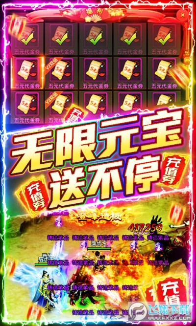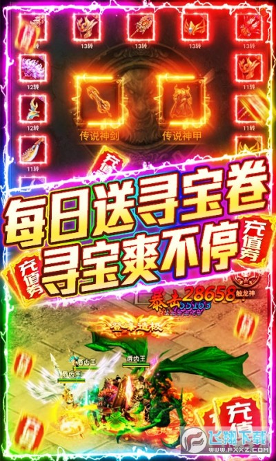 ★后缀说明:回收装备可获得大量元宝,打关卡得元宝;每日送寻宝券,每日完成活跃度任务即可免费领取寻宝券,玩家便可通过赠送的元宝和寻宝券,每日白嫖寻宝券