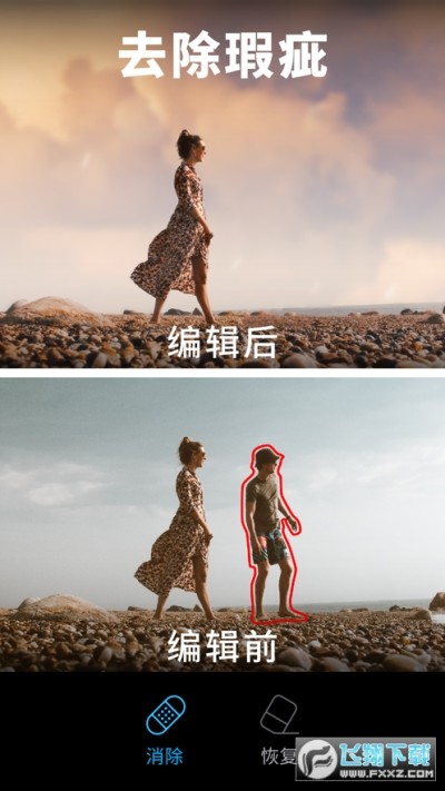 使用修复功能,跟专业的修图大师一样轻松处理掉意外入境的人物,背景中的污点并编辑美化照片。
