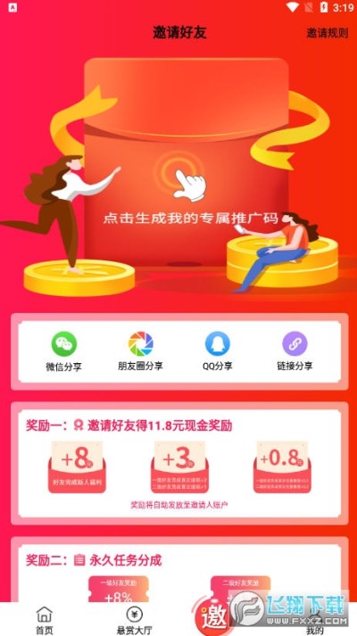 三、邀请的一二级好友完成任务总金额达到对应的阶梯,可获得对应的阶梯奖励,总奖池高达88888元!三重奖励互不冲突,奖金无上限,邀请越多,收入越多!动一动手指邀请起来!