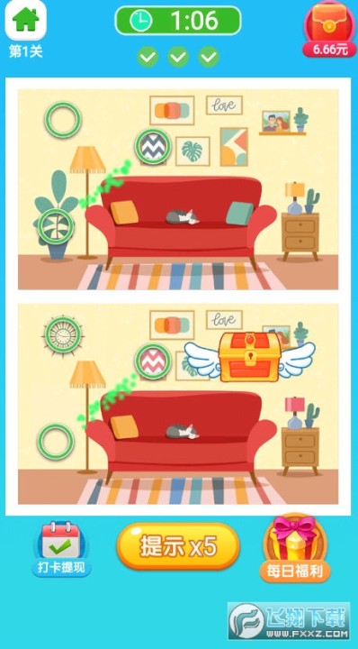 找茬乐翻天APP是一款最新上线的手机免费赚钱软件平台,与之前发布的找茬乐翻天数据不互通,新用户登录即可送6.6元现金,首次只要0.3元即可提现,秒到微信零钱。之后还有0.3元、0.5元低门槛提现机会,完成一定的任务以直接提现,感兴趣的话下载找茬乐翻天APP试玩赚钱体验吧!