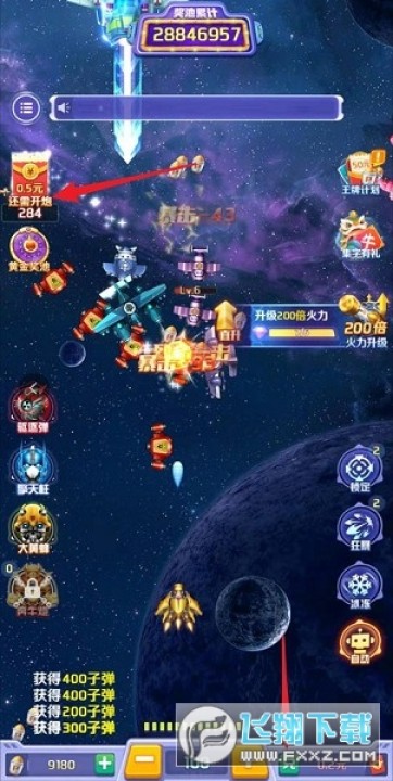 疯狂飞机这个活动和『欢乐太空达人』差不多,也是挂机试玩,几分钟可得0.3,运气不是十分差的话基本上还可以再拿0.5。操作方面以自动挂机为主,看到一些十分难打的大BOSS之类挡道的最好避让一下,不要浪费金币。
