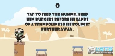 饥饿的木乃伊是一款超有趣的冒险过关类型的手机游戏,在这里玩家需要操作木乃伊来进行游戏,饥肠辘辘的它此时只想吃一个汉堡包,可只有到达终点才有,你要做的就是控制它在一根根柱子上跳跃,一直到终点!