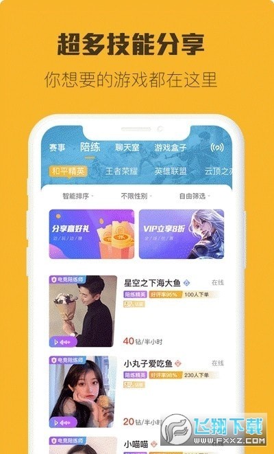 1、这里汇聚诸多有趣好玩的朋友,大家可以一起玩游戏开黑、语音聊天、赛事陪练等;