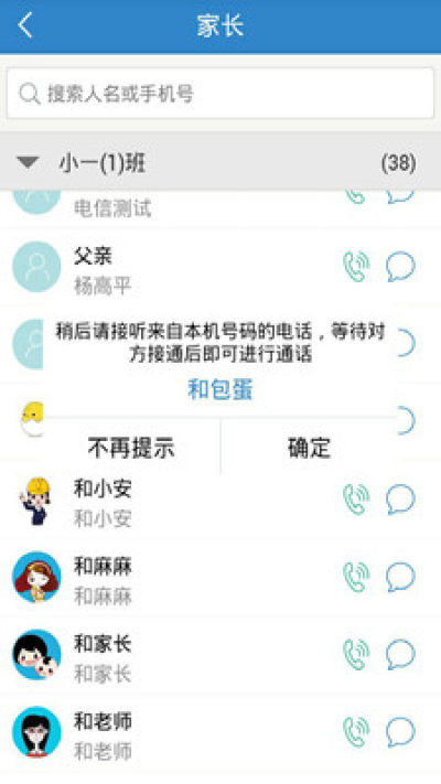 【家校互动】语音、图片、文字,即时通讯更轻松;CTD电话,无需记号码,节约成本无负担;公众号,教育资讯一手掌握;考勤、成绩查询,班级相册,学生情况多方位了解;