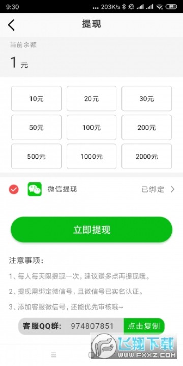 2、在财气赚上赚取的奖励满10元提现,每人每天可提现一次,当天即可到账