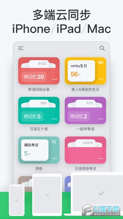 闪卡app苹果版是一款手机知识学习记录备忘的平台,这款软件可以通过备忘的方式来提醒用户的各种事项,在闪卡app上有多种记忆法,还能自己定制学习内容,各种知识点的复习整理等等都能制作,快来试试吧!