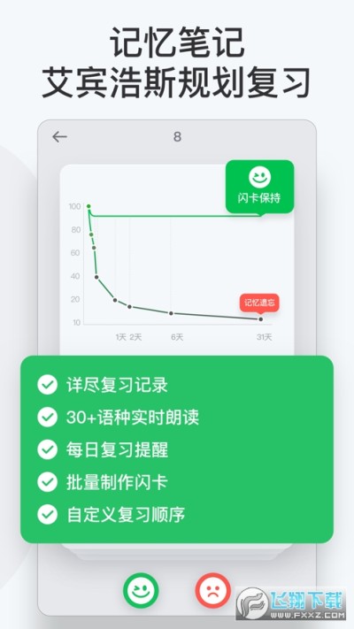 闪卡能够将繁琐但重要的记忆任务自动规划,依据艾宾浩斯记忆曲线开发的复习算法,在你即将遗忘之际及时提醒复习。
