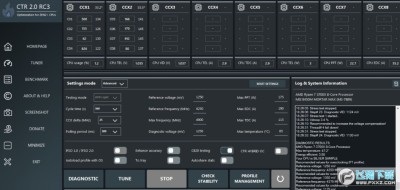 点击左下角DIAGNOSTIC,让CTR软件为你的锐龙处理器做一个大致的体检。软件会通过尝试降低电压并执行AVX Light测试来判断各核心的体质。分析过程结束后在软件界面右下角的Log & System Information日志中可以记录下三组建议电压和频率。