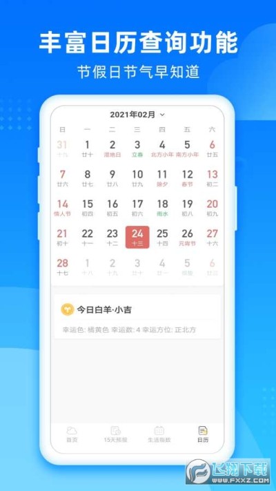 5、丰富的日历查询功能:多种日历、黄历查询,以及法定节假日、重要节日提醒服务,满足不同方面的日期查询需求。