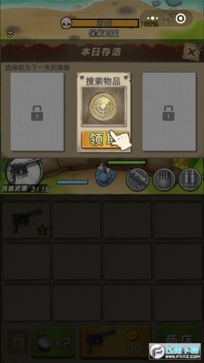 1、放置吃鸡游戏,没有同伴和你一起,玩家升级武器,完成独立任务。