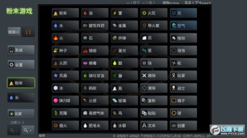 从蚂蚁、战士、风、火、水、岩浆到玻璃、沙、种子、云…选定以后往屏幕上轻轻挥洒,纷纷扬扬的粉末就开始沿着自己的固有规律运作起来