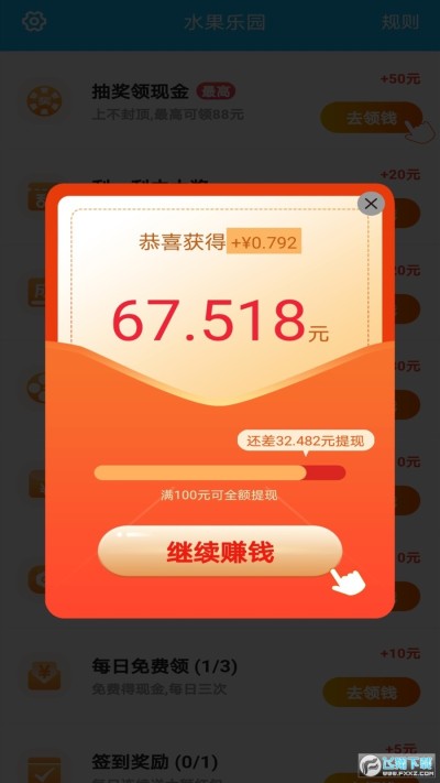 水果乐园,抽奖,趣味答题,领每日红包。不需要任何投资,每天完成任务还有额外的奖励,还有多种赚钱玩法可以参与,邀请好友还能额外获得收益,非常的不错。
