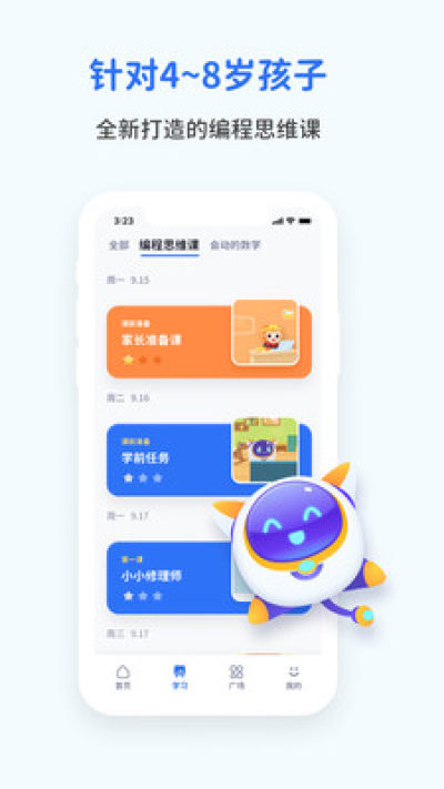 2、手机上课,在家就能学习到适合他们的数理逻辑思维课程;