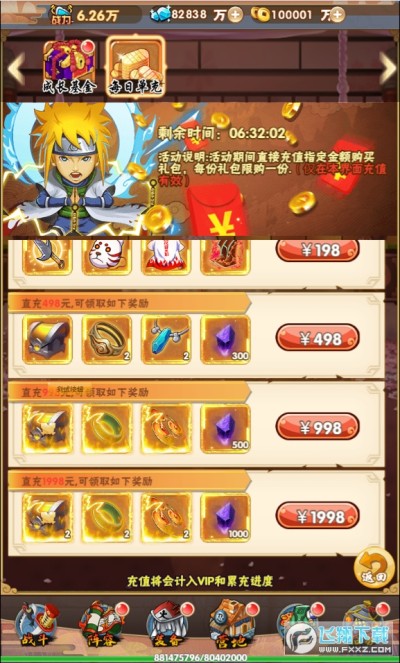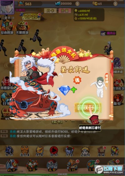后缀说明:挂机得忍者币,开启忍者商城无限领充值卡。所有充值卡每日可兼容获得,每日最高累积4000充值!