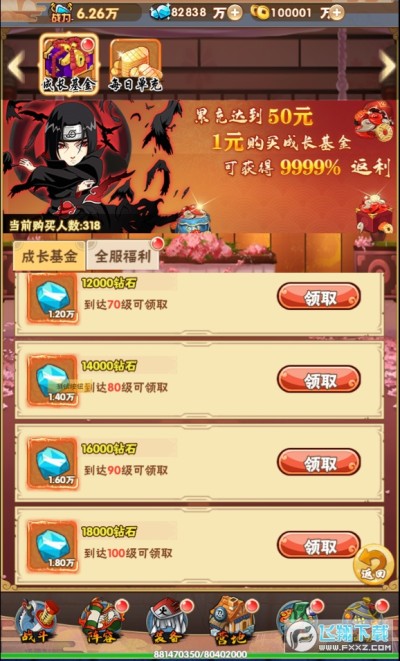 《永恒战士4-无限领充值》经典火影再现,究极大战重燃!上线就送海量钻石、百连抽卡,豪华开局福利,尽享极品特权!还有1钻石成长基金,你敢买我敢送,累计返还90000钻!更有免费忍者商场,每日都能领充值,最高累计4000充,让你领到爽!海量超爽福利,助你热血一战!忍界究竟将何去何从,世界命运由你掌握!
