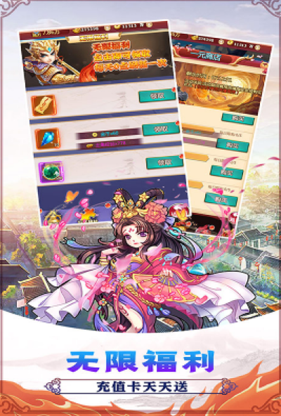 剧情丰富,环环相扣,数十个BOSS,百余件装备,超全三国武将,千关关卡等你挑战。百人阵营大战,华丽武将技能、天赋技、组合技,视觉盛宴等你畅享。创意九州茶馆,聊天嗨不停,鲜花、臭鸡蛋超多道具表心意。