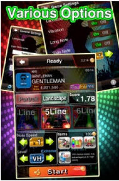 玩家可以选择演奏时音乐线的多少,而且最多竟能达到8条线