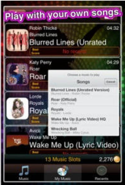 迷你节奏》能够演奏自己音乐库里的歌曲,而且选项也极其多!每添加一首要200游戏币