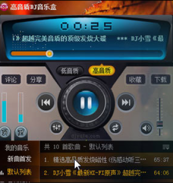 需先登陆DJ娱乐网,在上面搜索喜欢的DJ舞曲,根据账户信息,将自动保存到播放器中,点击“开始”即可播放,支持评论,分享,收藏,下载等功能。
