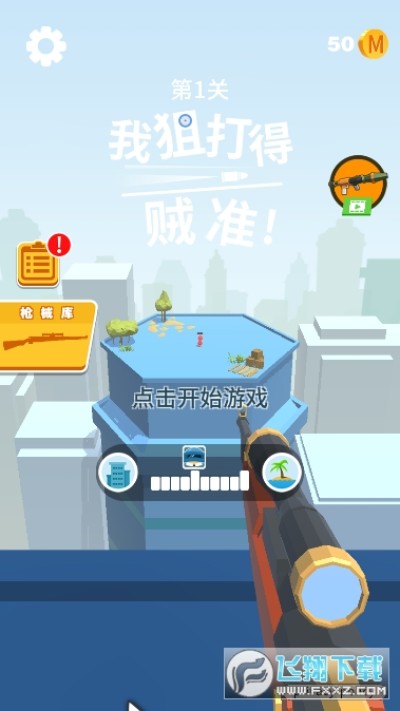 1、简单有趣的游戏玩法,化身一名神枪手,提高角色自身的战斗力,消灭关卡指定的各个目标;
