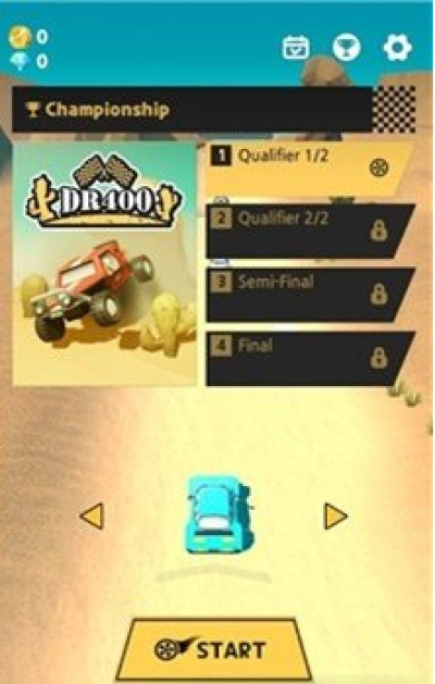 1、最开始所有人都会使用新手赛车去征战各种超简单地图;