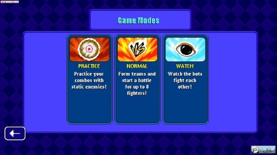 3、游戏模式将分为三种,一种是训练模式,你可以在这里开发人物的连招或者熟悉他的技能,另外两种则是则是操作模式下的格斗和自动格斗模式;而在这些模式中,最多可支持8为角色同时在一个场景中进行乱斗。