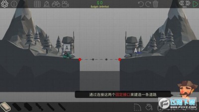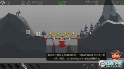 2、修建一座桥梁时,您可以为每一段桥梁选择不同的材料,例如木头、钢筋、钢索或混凝土支柱,可以随意搭配不同的建筑材料(唯一的限制条件是您的预算)。