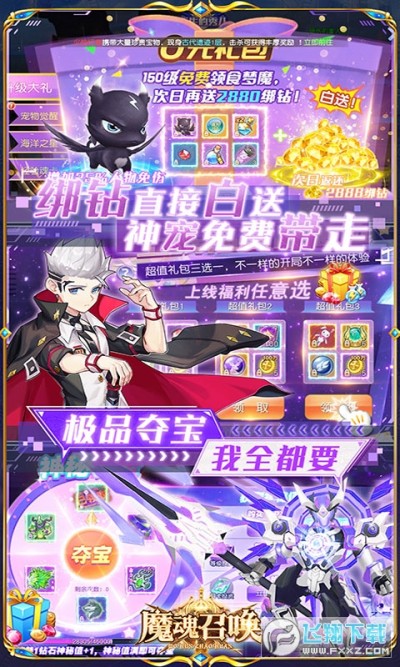 《魔魂召唤-送欧皇千充》是一款以精美宏大的场景和热血澎湃的背景音效为主要特色的具有鲜明二次元、魔幻特点的动作冒险类手游,超炫酷的变身机甲,让你战力秒升,特有技能秒杀全屏,机甲试炼,获取海量机甲提升材料,让你的机甲更进一步,更有极速匹配对象、宠物培养协战、养育宝宝,让你在冒险路上不孤单。趣味十足的丰富活动,多元的战斗形式,独创动作手游极致体验!