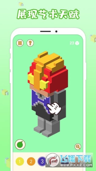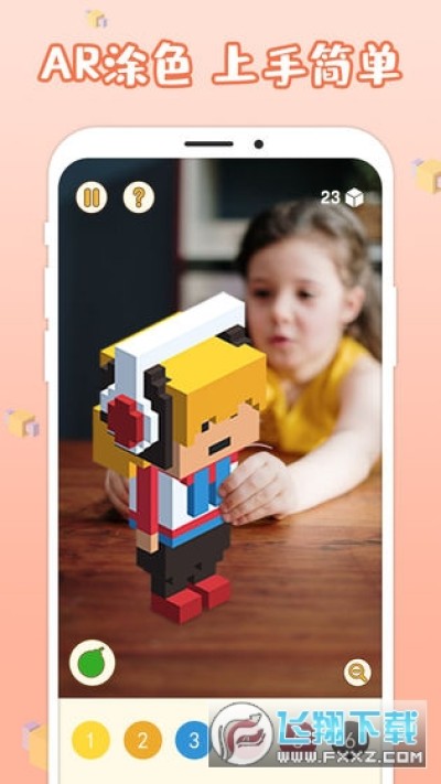 1、像素方块,立体手办玩偶需要上色,在上色过程中完成挑战。