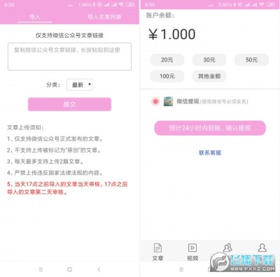 1、睡莲资讯上线前两天转发单价为1元,两天后单价提升至2元,支持上传导入文章