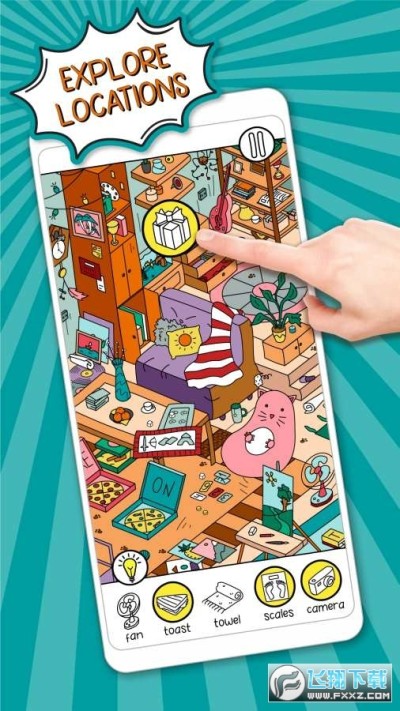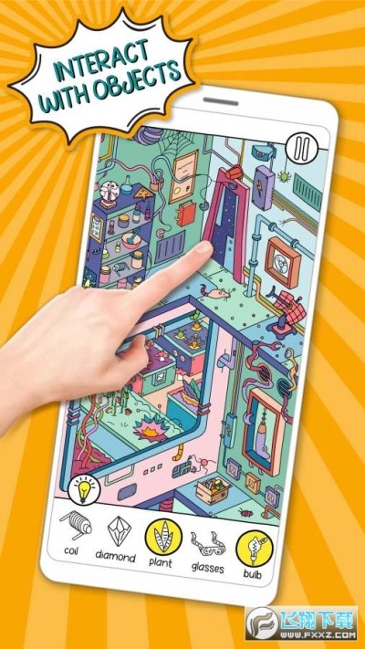 隐藏物品游戏,独特的艺术,互动环境和大量的细节。