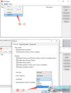 2、汉化步骤:按图示步骤进行操作,最后关闭并重新打开VCE即可(不要升级,如有提示升级框,直接关闭提示框)