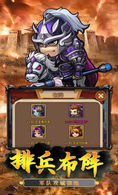 最受欢迎的Q版三国题材手机休闲游戏!上百名三国武将轻松养成,数百关卡攻城夺宝!让我们一起来轻松挂机打三国。玩家化身天命主公,收集群雄武将,锻造神兵套装,寻得专属宝物,给您一个轻松俯瞰天下、成就霸业的三国世界。