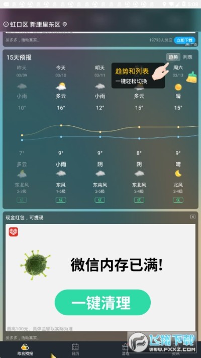 今时天气app:精准在线为你提供关于天气方面的变化信息还是挺不错的啊,享受健康的生活就应该出门多看看天气,避免自己穿衣什么的烦恼,还可以为你播报一些相对应的信息,比如道路信息,以及一些洗车还有穿衣指数之内的信息啊。