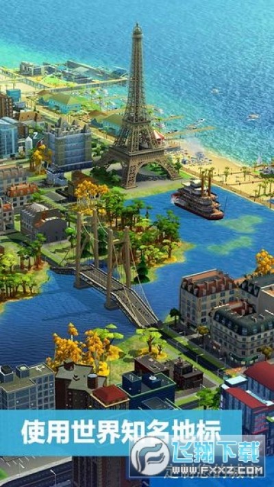 利用众多世界级地标建筑(如:埃菲尔铁塔、帝国大厦、凯旋门等等)以及各类楼宇规划城区,自由定制心目中的理想城市。