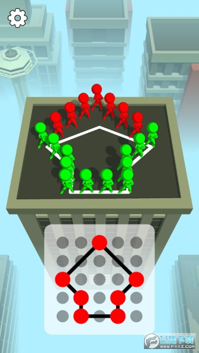 在游戏中有着庞大的城市面貌,众多的不同颜色的小人分布,不同的颜色就代表着不同玩家阵营,召集到城市中散落的人类,组成一支强大的阵容.
