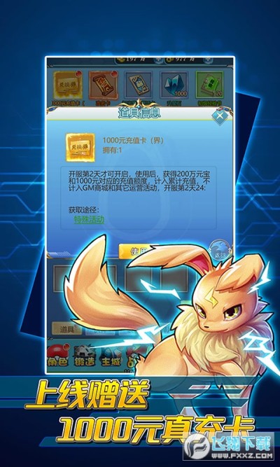 1、上线就送GM1、200W钻石、十连抽招贤币、1000元真充卡